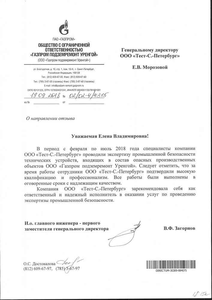 Отзыв ООО "Газпром Подземремонт Уренгой"