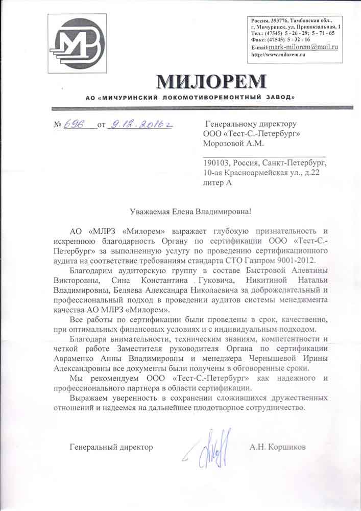 Отзыв ООО "Газпром Подземремонт Уренгой"